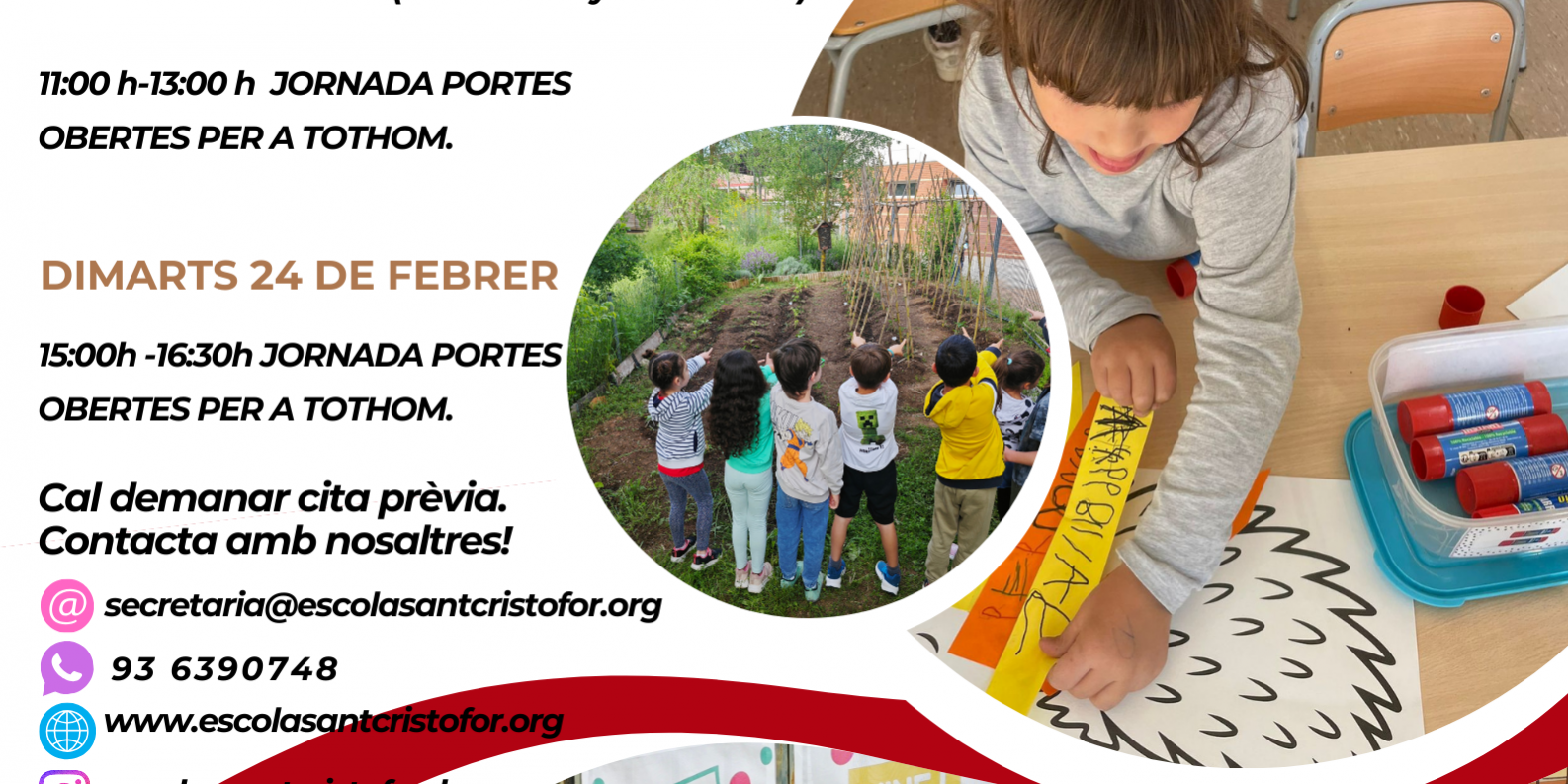Per a més informació i per demanar cita prèvia 93 6390748 o per correu secretaria@escolasantcristofor.org